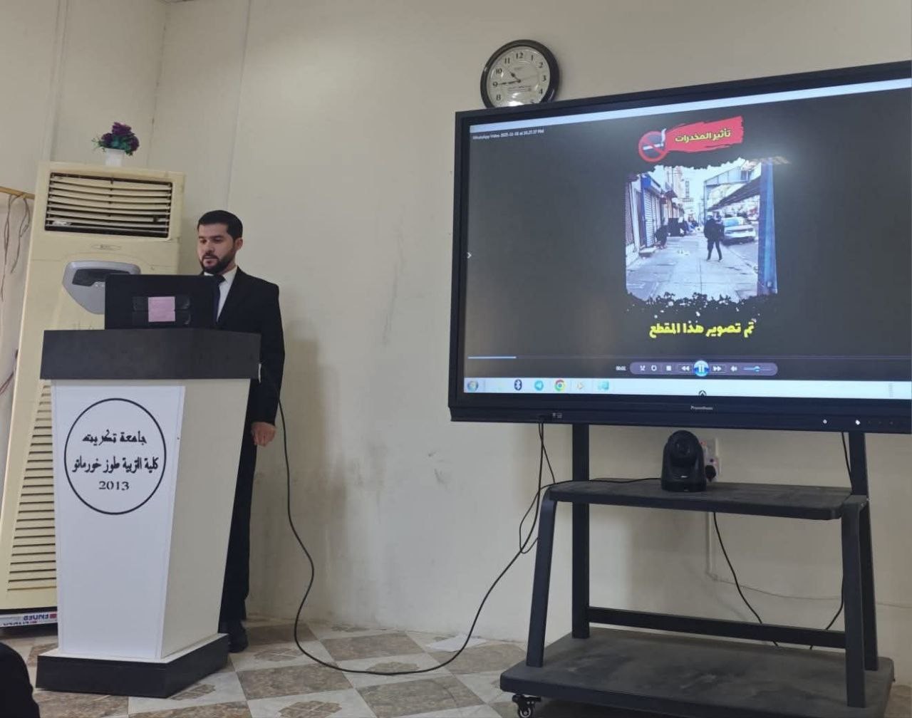The seminar took place today, Thursday, November 20, 2025, at the College of Education, Tuz Khurmatu. This activity was specifically conducted as part of the weekly anti-narcotics campaign called for by the Ministry of Higher Education and Scientific Research and in accordance with the directives of the Presidency of Tikrit University, aiming to enhance awareness and preventive behavior among students and the community.